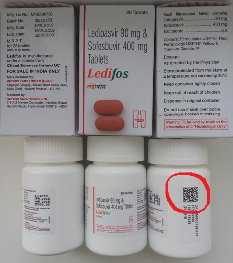 - партия ледифос из 3 упаковок (дата выпуска январь 2016 года) для второй половины моей пвт была доставлена в мае из Индии лично дилером; Две из трех бутылок содержали таблетки ярко оранжевого цвета с буквами на разных сторонах таблетки (S14 и H); Их фото в хорошем качестве есть на странице 6 и 8 этой моей темы; Одна бутылка осталась запечатанной.
