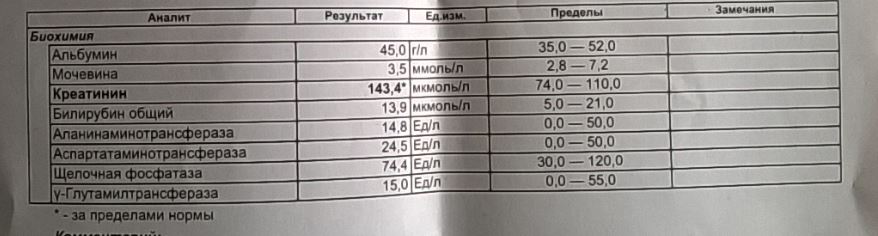 Теперь буду мониторить билик и креатинин.