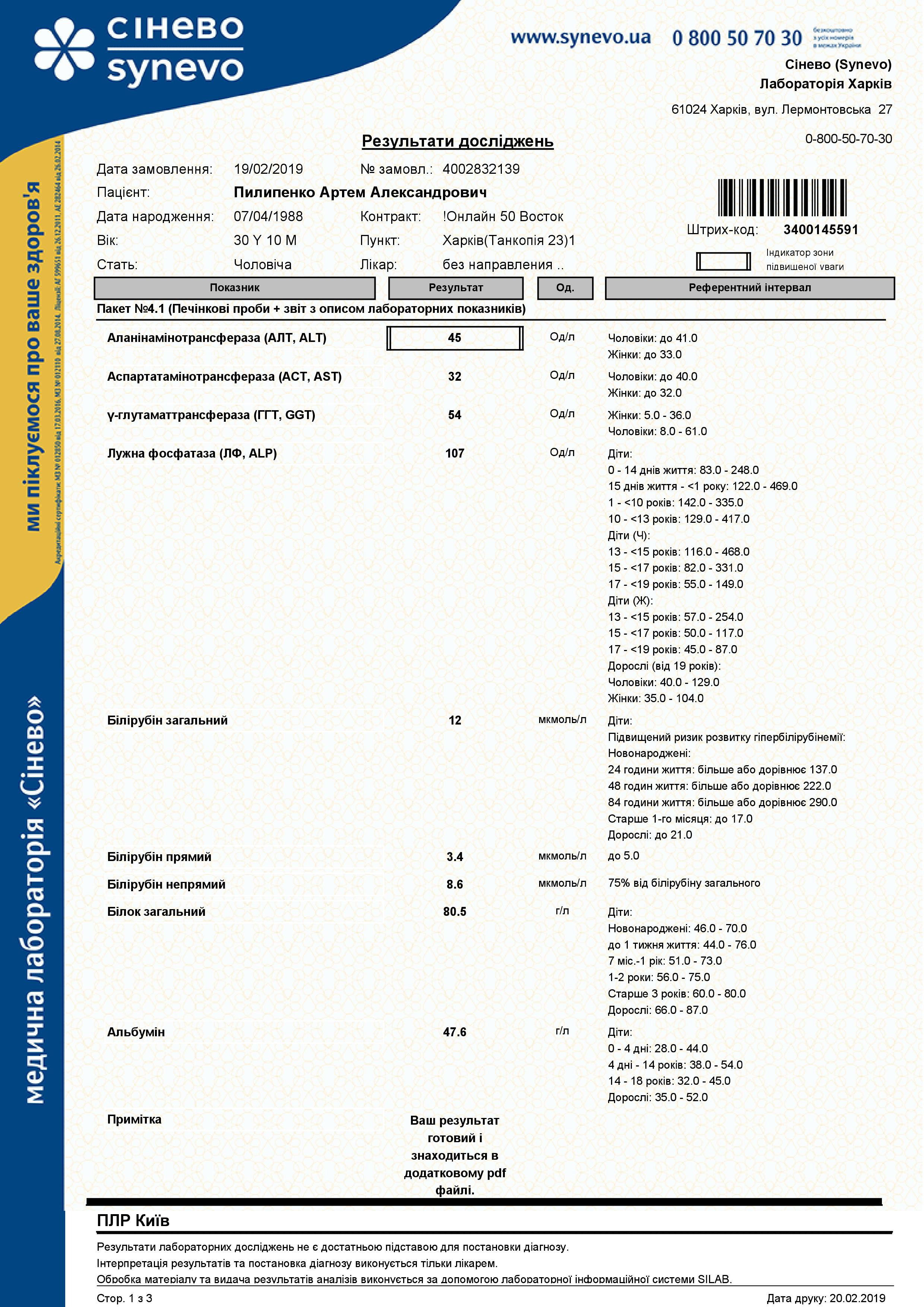 Фиброскан 20.0 кПа, фибротест0,87( F4), ActiTest 0.94 (A3), 1б, 2.3×10^4 Me.