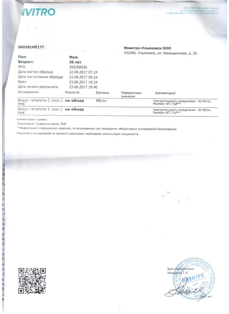 №3500СВ Вирус гепатита С (ВГС), РНК,качественный формат, ультрачувствительный тест (Hepatitis C Virus (HCV) RNA, qualitative, ultrasensitive)