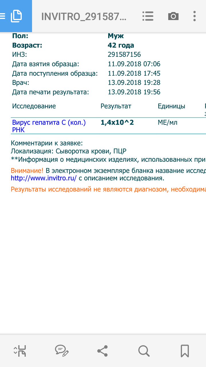 ПЦР 6 недель (+) Инвитро