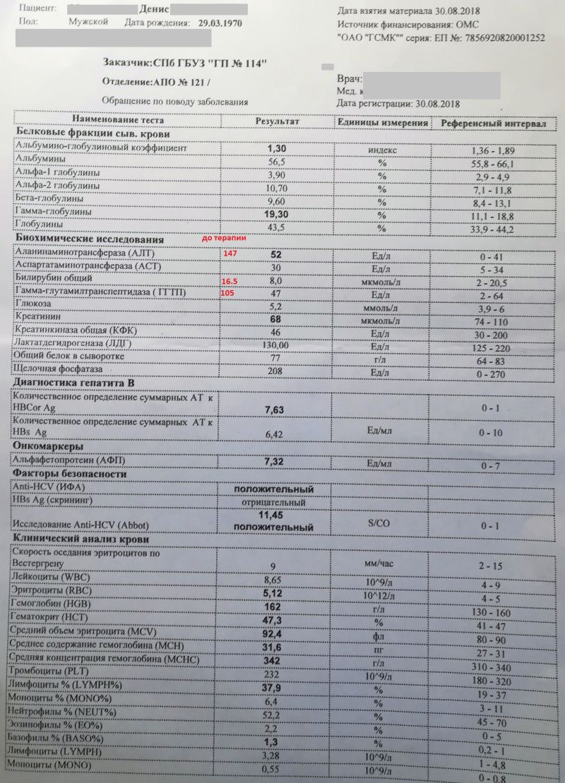 раздобыл в поликлинике результаты анализов 8го дня теры. зато бесплатно)