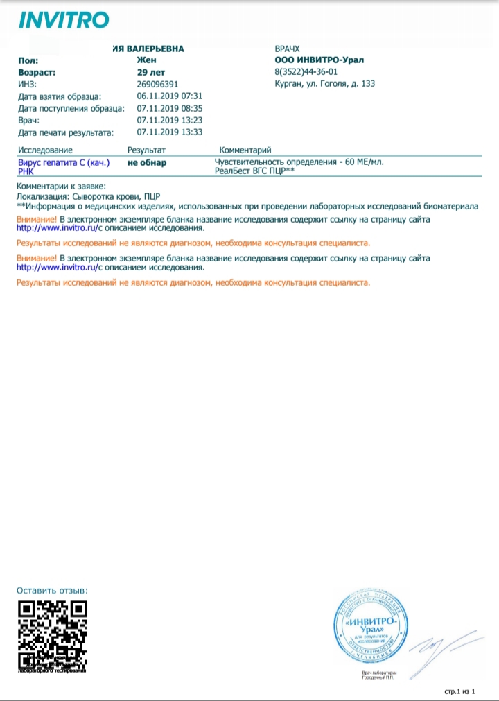 ПЦР 3 недели "Не обнаружено" Инвитро (60Ме)