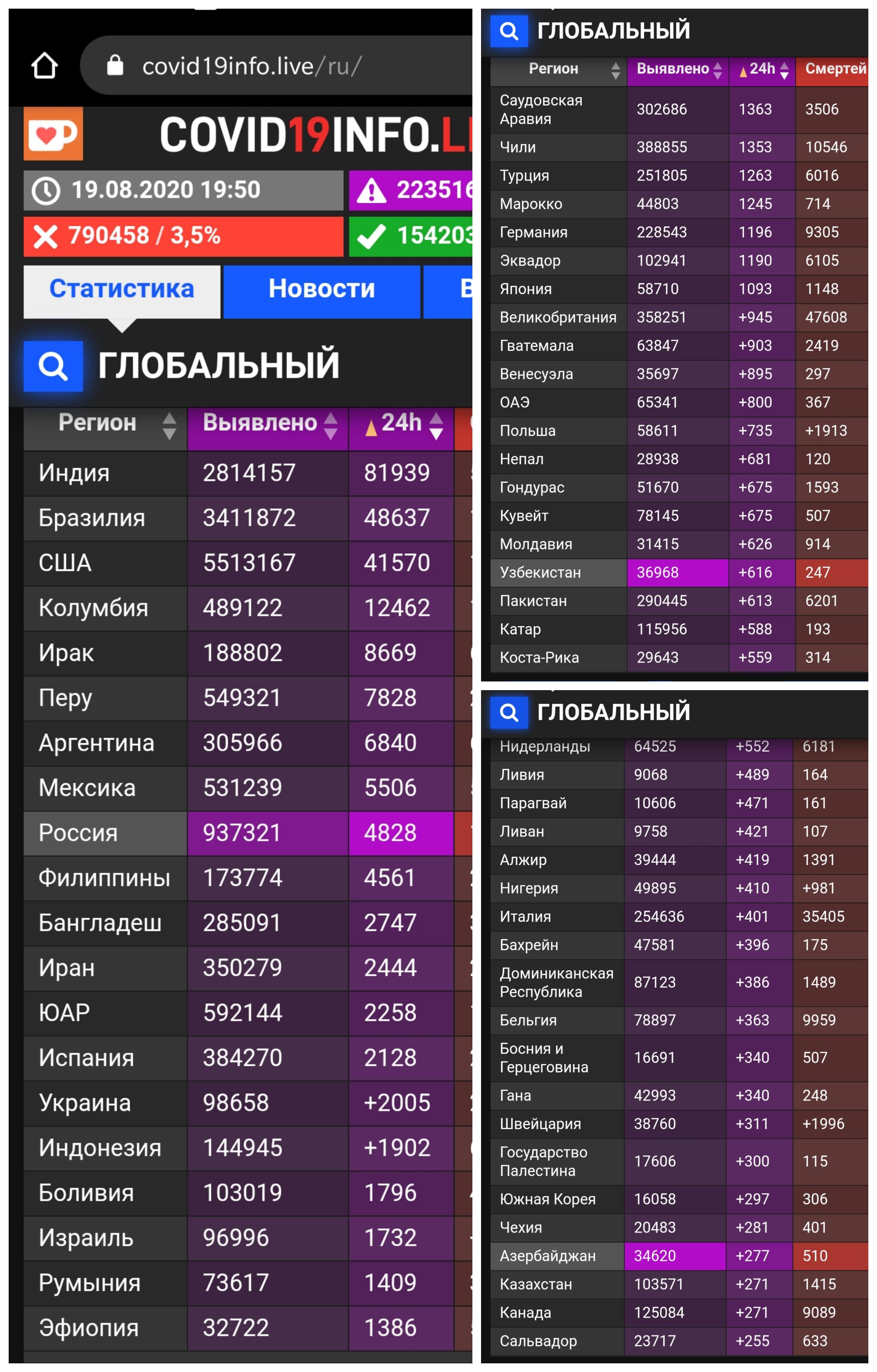 5. Выздоровели Индия 70621, Бразилия 52166, США 37383, РФ(7) 6795, Казахстан (15) 1841
