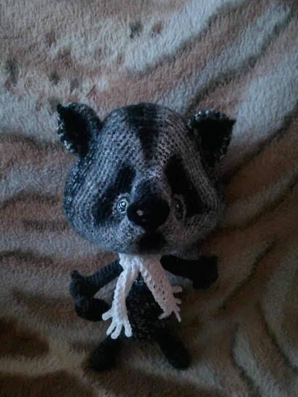 у меня такой малыш родился.. по МК Светланы Перцевой.. ну как малыш..см 30 росточком, осталось усы приладить... леску в доме не нашла... завтра будет усатый