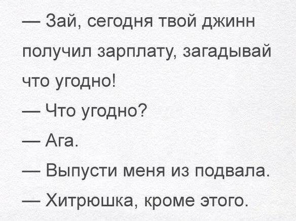 "Нужно создать сеть отелей "Бабуля" с коврами на стенах, кроватью с панцирной решеткой, телек накрыт кружевной салфеткой, куриный супчик на кухне чтоб и тишина гробовая — деточка спит. Сдаёшься туда на выходные, детям вход воспрещён. Только глаз открыл, а тебе так "спи, спи, ещё 10 утра нет", ну если встать в туалет, чтоб носки на ноги надели с батареи снятые, тёплые и "обратно ложись". В час дня тебе в кровать этот куриный супчик, по голове погладили "бедное дитя, умучили совсем этой школой, синяки под глазами, в чем душа держится, какао будешь, горе моё? А булку с изюмом? Ну лежи, лежи. Мультики тебе включить? В гостях у сказки идёт." Тыры-дыры-дынь, дыры-дынь, дыры-дынь-дынь..."
