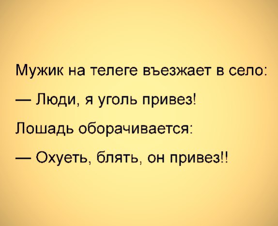 Мужик тянет телегу с навозом по шоссе. в старой дедовской телогрейке, весь такой взмыленный, вымазанный, тут с визгом останавливается порш, а от туда офигенная девушка спрашивает:
