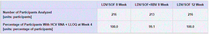 Percentage of Participants With HCV RNA < LLOQ at Week 4 [ Time Frame: Week 4 ] [ Designated as safety issue: No ]