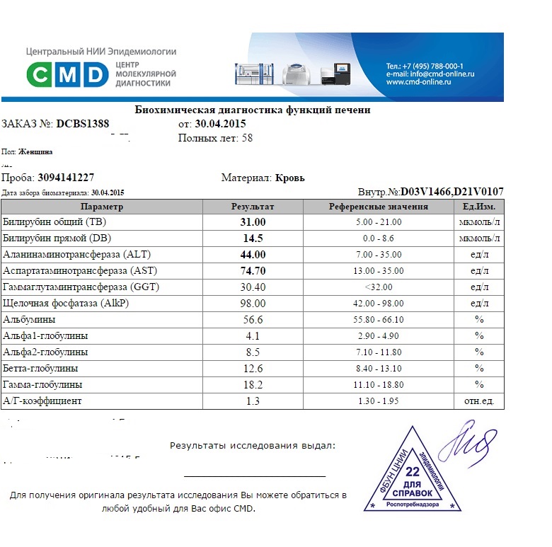 - Гепатит: Гепатита нет