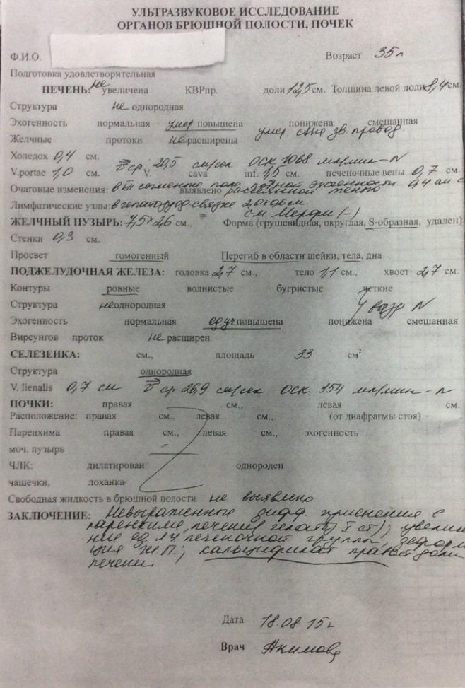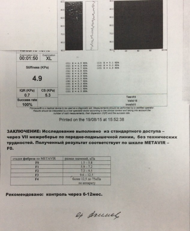 Фиброскан 08.2015 (11.0 КПа ) 01.2016 (10.4 КПа, 07.2016 -7,9кПа