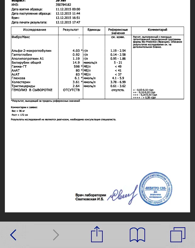 3. алкогольное повреждение печени и алкогольный гепатит. При хроническом алкоголизме ГГТ увеличивается в 10 раз, а соотношения ГГТ/АСТ составляет около 6, что дает возможность отличить данную патологию от хронического вирусного гепатита (см. пункт 1).