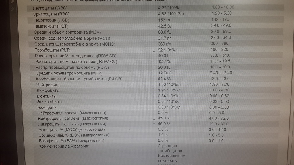 Сегодня пришли последние анализы. Биохимия в норме, а тромбы опять ниже, чем были неделю назад. Нейтрофилы чуть подросли ближе к норме, и лимфоциты ближе к норме стали. А вот тромбы никак не подниму. Купил крапиву, попробую. Содекор, как Совок рекомендует, в нашей дыре не нашёл