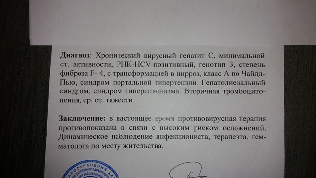 Фиброскан 08.2015 (11.0 КПа ) 01.2016 (10.4 КПа, 07.2016 -7,9кПа