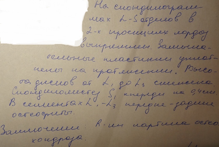 Судя по заключению, которое ты выложил, есть смещения дисков, если я правильно прочла. Честно говоря, не все слова поняла.)