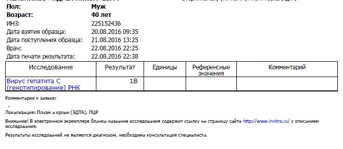 Старт 5.09.16 г, Соф - Дак - Сим с 5 недели , 16 недель ПВТ , Геп С 1 в , Ф 3 (11,6) , 1 день в/н 9,1x10^6 (60 МЕ/мл Инвитро) , 3 н, в/н 1,9 х10^2 (60 МЕ/мл Инвитро) , 5 н. ПВТ <10 ^2 (60 МЕ/мл Инвитро количество ) 6 н. Не обнаружено ( 60 МЕ/мл качество), 7 н. Не обнаружно ( 15 МЕ/мл ультра ) , 9 н. Не обнаружено (60 МЕ/мл качество ) , 12 н. Не обнаружено ( 60 МЕ/мл качество) 16 н. Не обнаружено ( 60 МЕ/мл качество) УВО 24