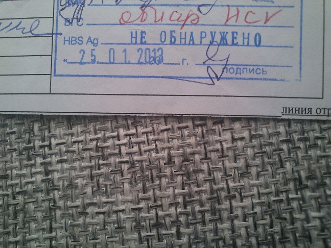 нашла самый первый анализ мужа от 2013года, когда обнаружили гепатит с.Анализ делала в местной нашей больнице,типовой бегунок перед госпитализацией на вич и гепатиты.