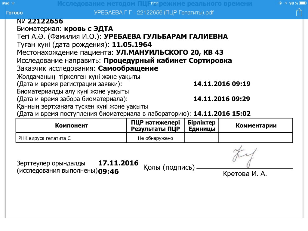 mihalych Здравствуйте. Мама сдала пцр качественный в 14.11.16г. Ответ пришол сегодня отрицательный. Что нужно еще сдать чтобы наверняка?