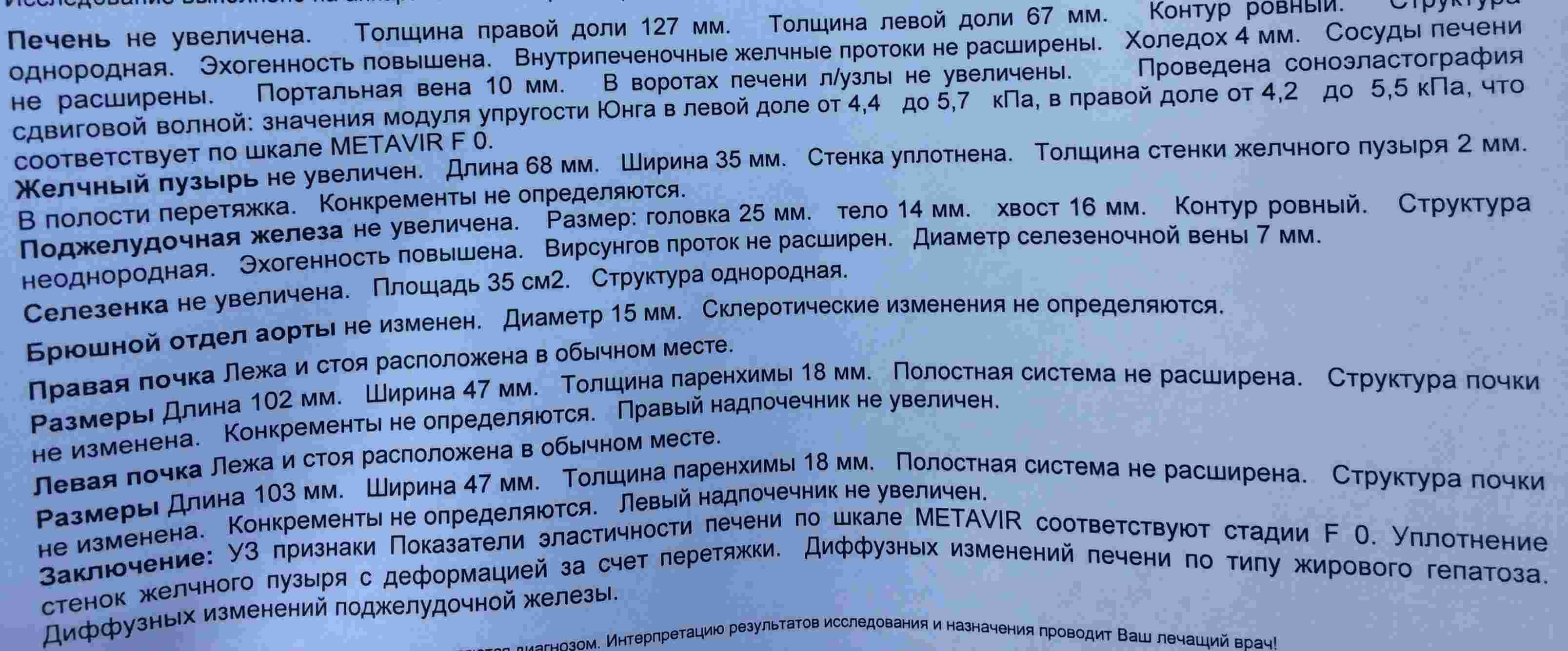 Поджелудочная почему-то не соответствует нулевому фиброзу. Что было в прошлом? Как со спиртным?