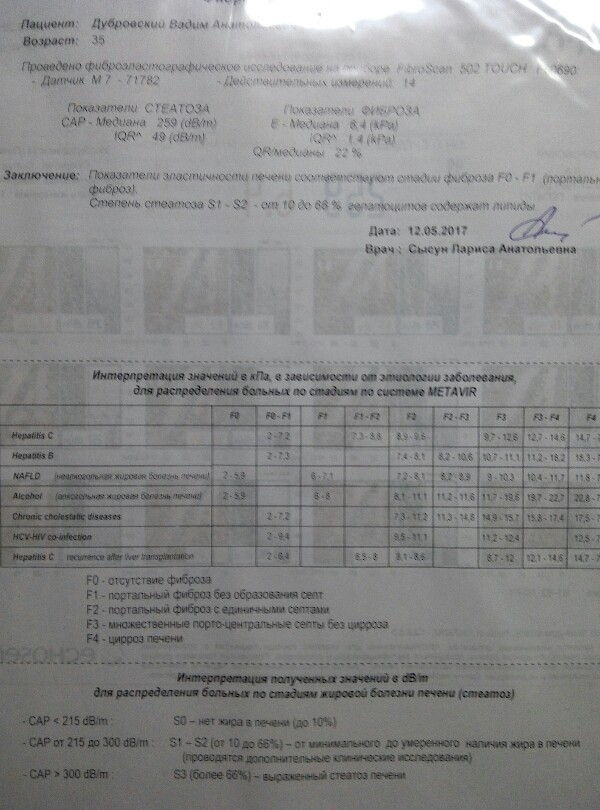 По заключению стеатоз и фиброз 0-1 степени. Фиброз совсем небольшой! Повезло!