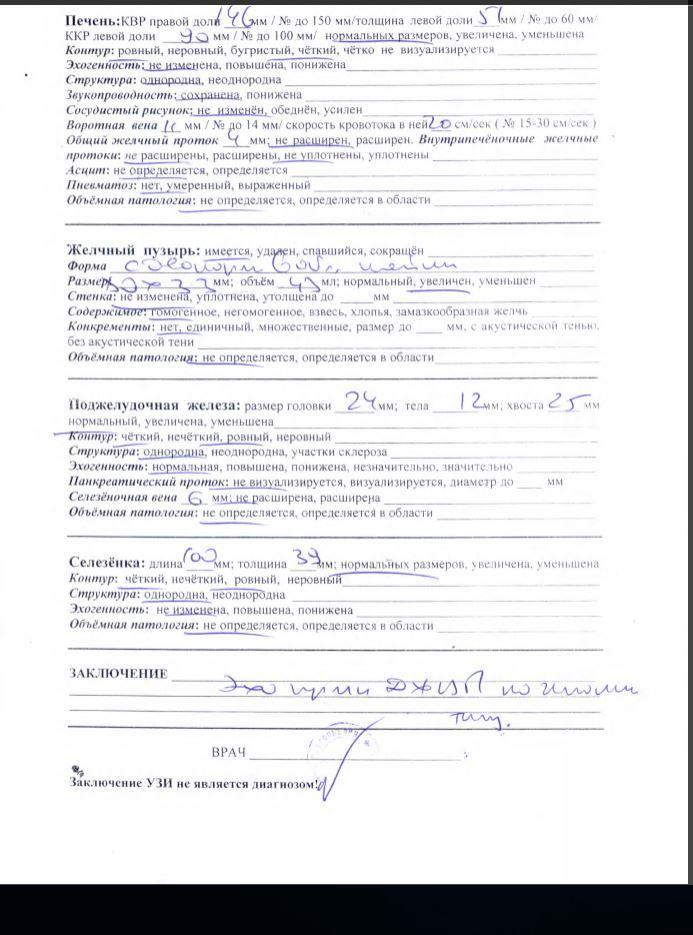 На следующий день меня крутили на том же аппарате УЗИ наверное с полчаса и заверили - цирроза нет вообще.Вот скан того старого (через две недели я уже начал теру).