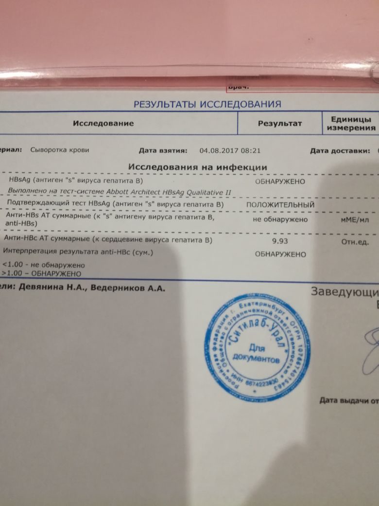 Первое- без паники, вы уже опытный человек в инфекционных заболеваниях.Да антиген положительный, это говорит о наличии геп В.А суммарные антитела к геп Д вы сдали? Этот тот анализ, про который Марат писал, что его нужно сдать если HBsAg будет положительным, теперь первый результат есть и он положительный. 42-20-030 тест, если не сдали, то нужно сдать, желательно не затягивая.