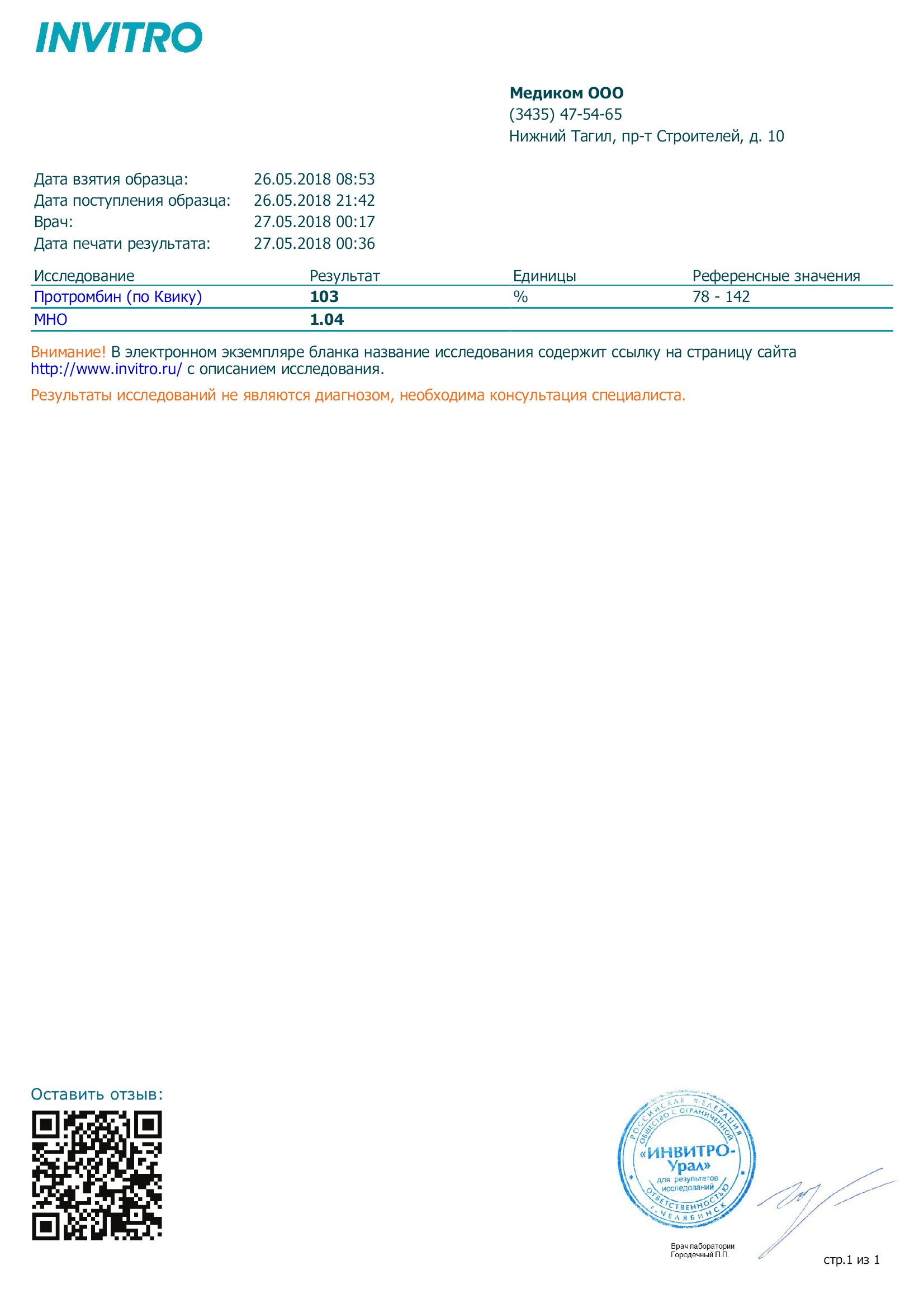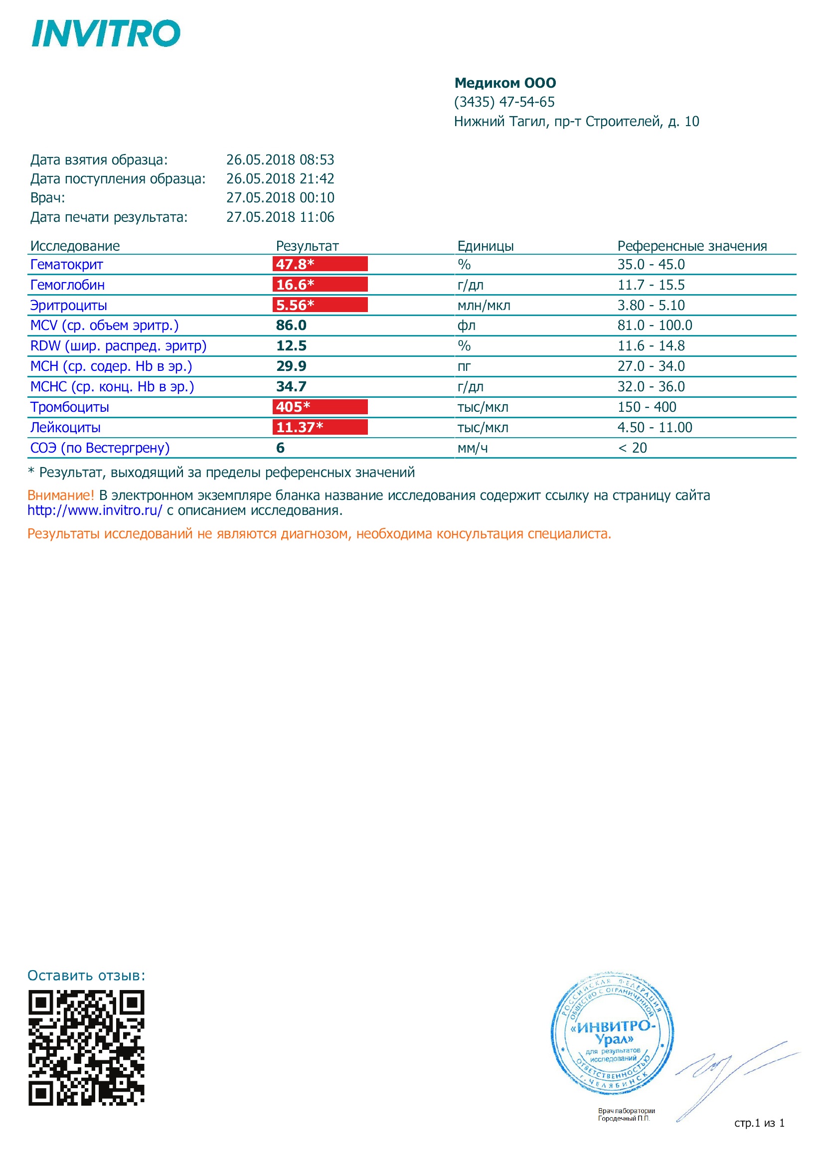 Последние результаты анализов крови