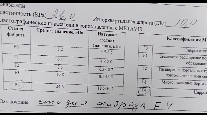 poli, анализы для цирроза вполне себе ничего. Печень по УЗИ приличная - на фоне всех прочих анализов фиброскан 26 кПа озадачивает. Лишнего веса у Вас нет, случаем?