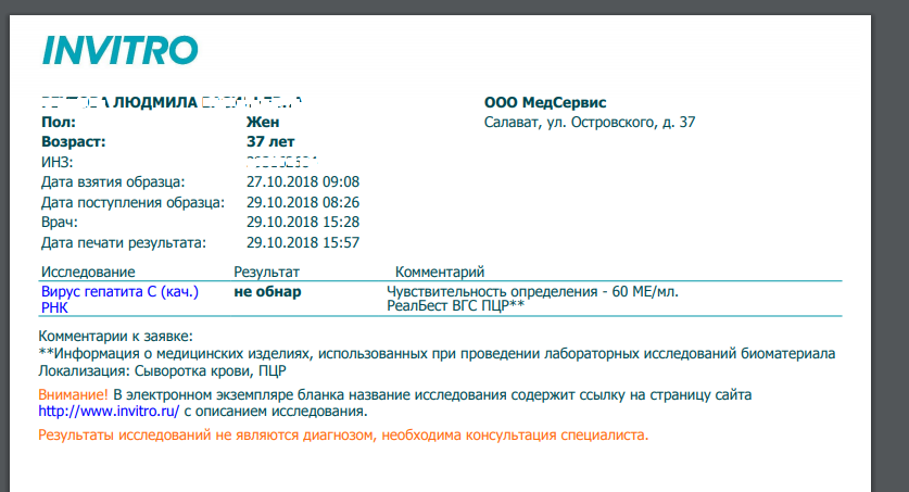 ПЦР 4 нед (-) 60ме Инвитро