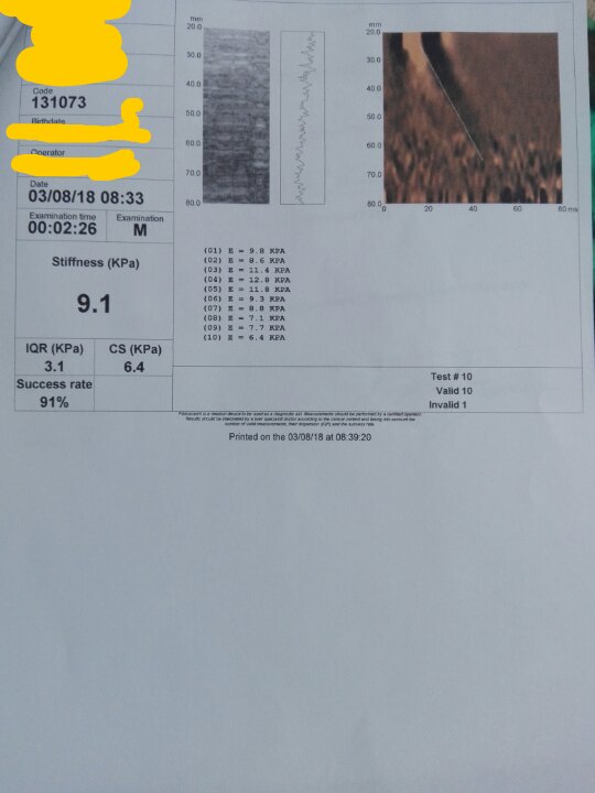 Про эластографию не могу сказать ничего, к сожалению. Ни датчика, ни аппарата. По всей вероятности, датчик М. Со слов мужа, врач сказал, что степень фиброза ближе к третьей. По идее, оснований не доверять клинике нет, давняя и отзывы нормальные. Может быть, фото что-то прояснит.