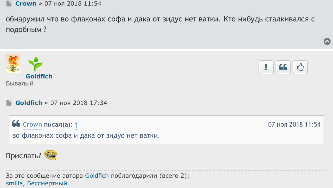 Ты когда ватку пришлёшь, вуалехвост ?!