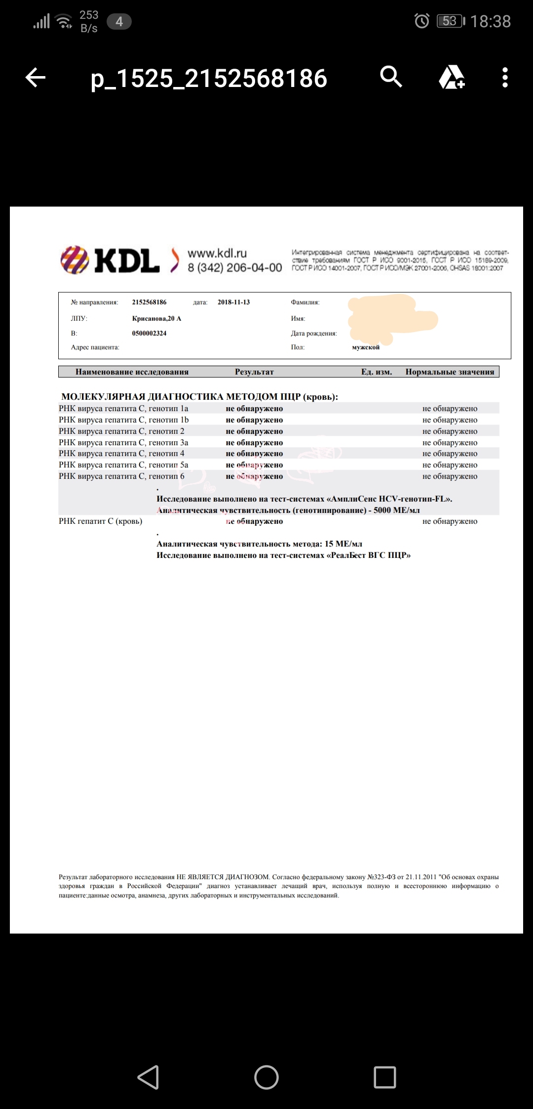 Dim20100, Вот мне интересно,а почему все таки вы решили что у вас был,должен быть был гепатит С,вы выложили первые два скрина ( вот с чего все началось),так там если быть внимательным то 25.06.08 у вас обнаружили РНК кач. С,а вот 16.07.08 к вас РНК кач,полукач,кол нет ничего и все генотипы отрицательны! Потом в 2015 году у вас кол и ген тоже отрицательно! ИФА анализа не видел тут!