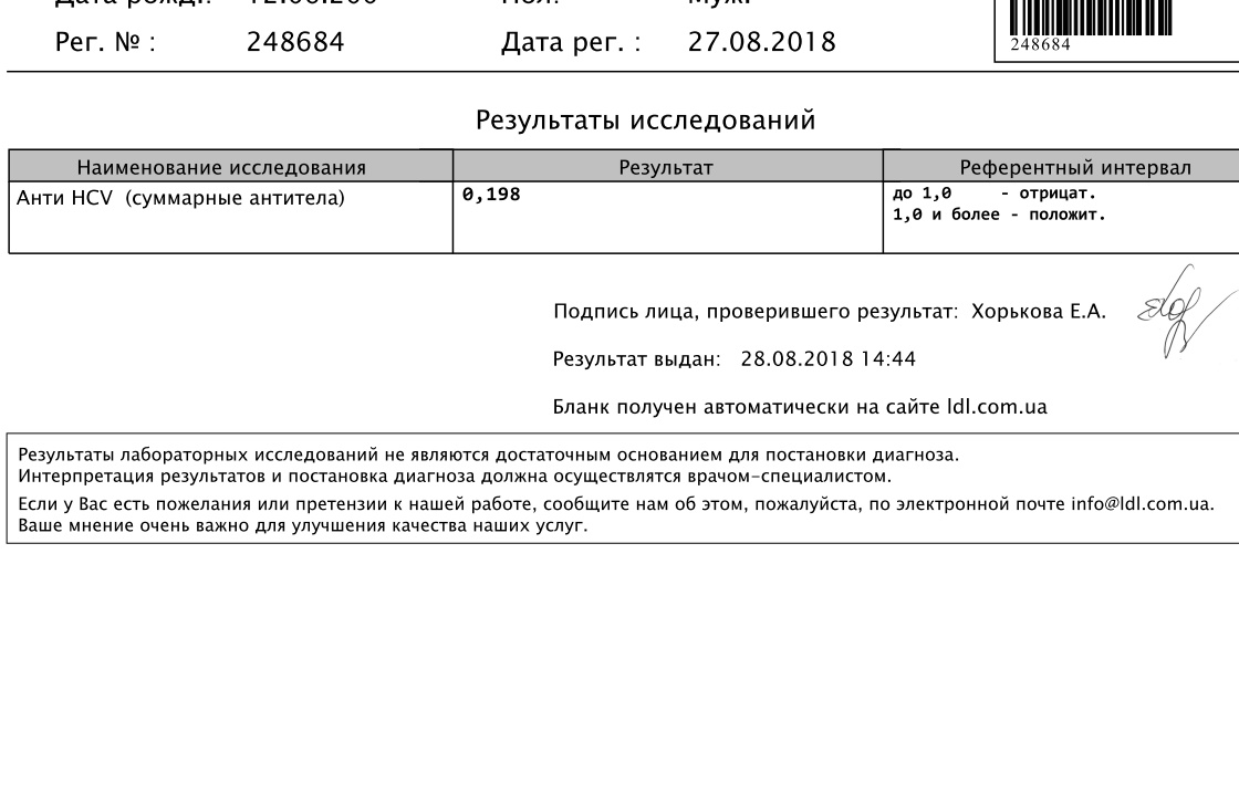 Здравствуйте Все.Вопрос к бывалым или специалистам.Помогите интерпретировать результат.Сдал ближайший родственник.Вижу(-)но напрягает цифра 0.198 Можно считать что HCV нет или возможны варианты?Заранее спасибо