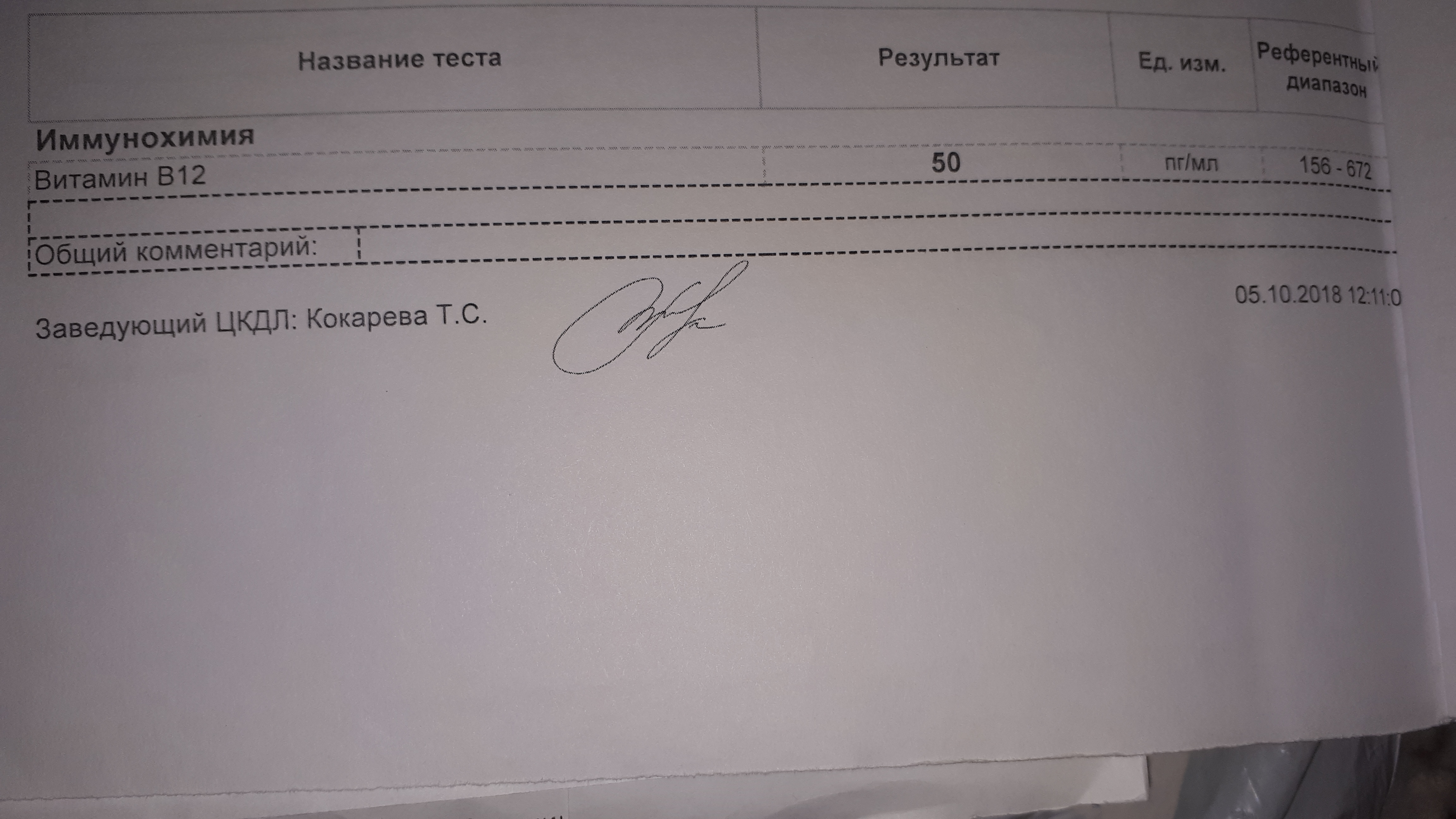 Креатинин, мочевина в норме. По МРТ есть кисты в почках. По крови В12 и В 9 анемия. Пью фолиевую и в уколах В12. Связывают дефицит В12 с гастритом. Хотя, конечно, более информативна пункция костного мозга, но я уже опоздала ее делать, так как начала принимать витамины.