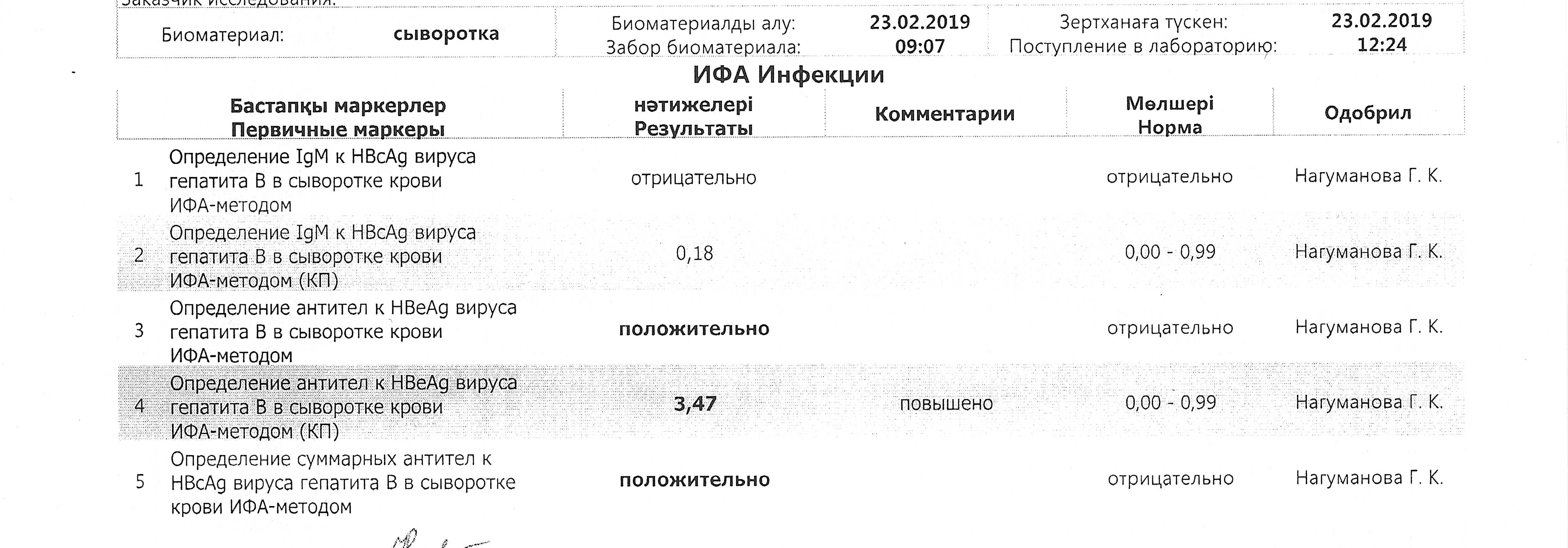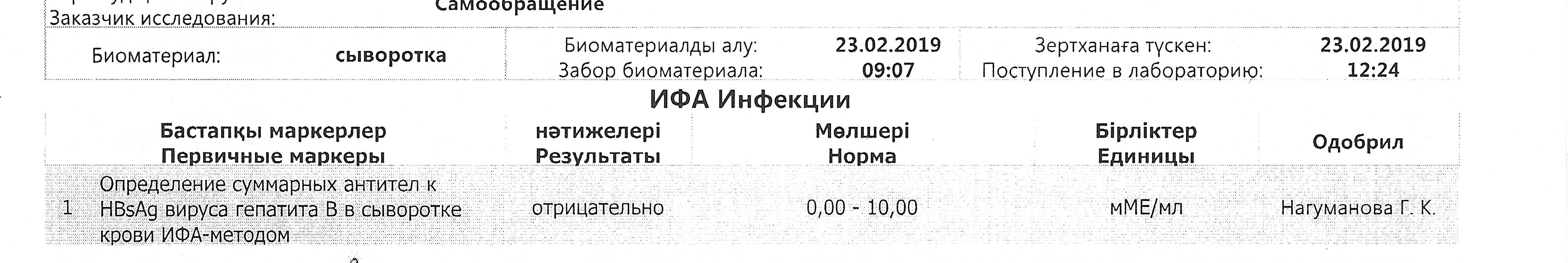 HBsAg количество: 12.2018-1010ме, 12.2019-864ме, 12.2020-763ме