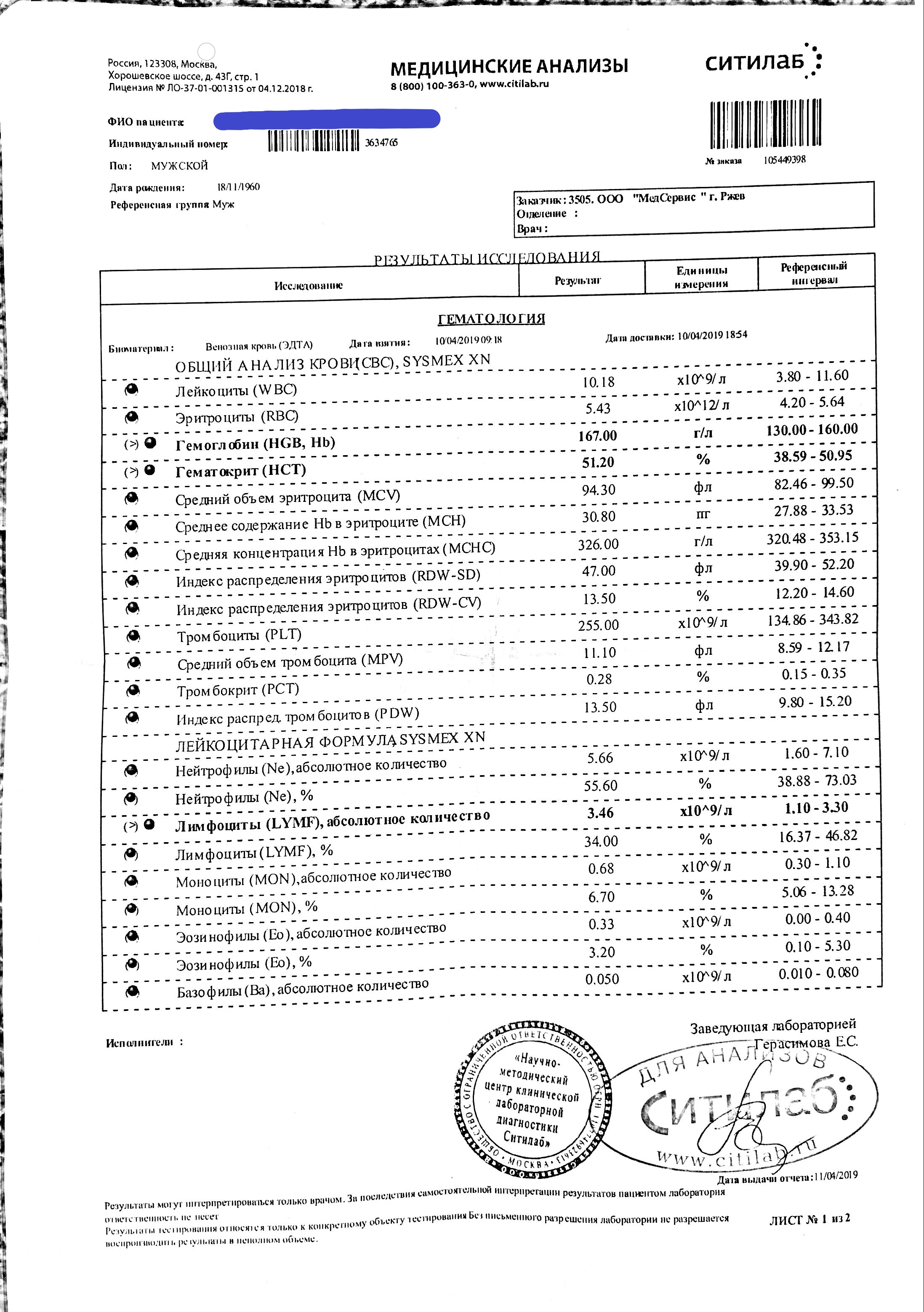 20.02.2019 АСТ-24, АЛТ-21, Бил.-16.8, тромбоциты 290 тыс.
