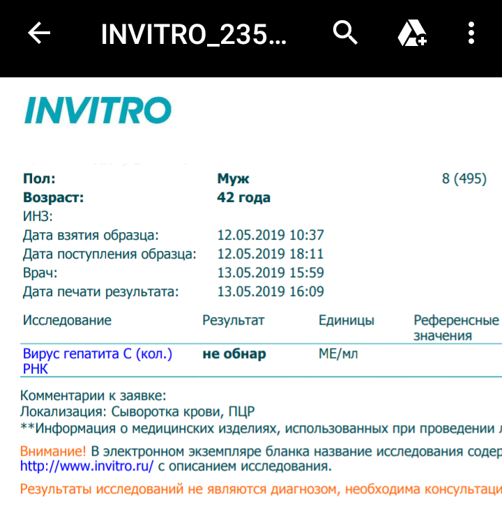 3. Врач отправила сдать на количество РНК ВГС. Сказала, что мол не факт что вирус есть, антитела говорят лишь, что гепатит когда-то был.