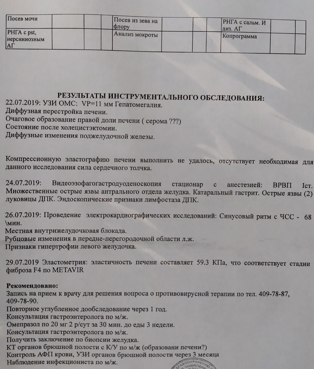 Чуть позже загружу результаты обследования.