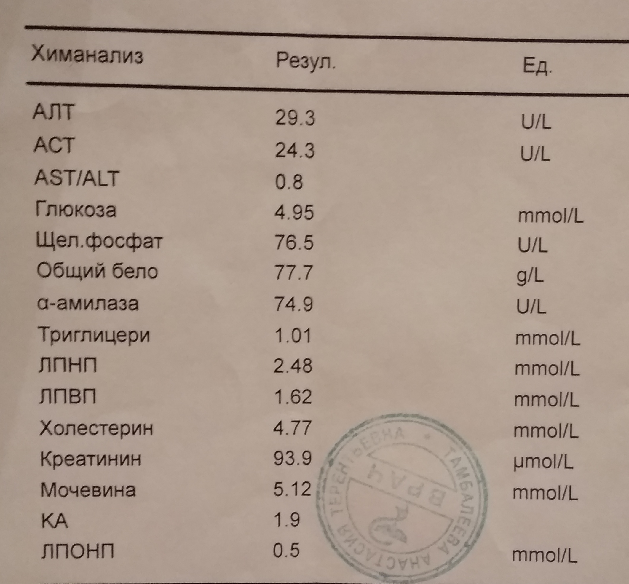 В бланке нет референсных значений?