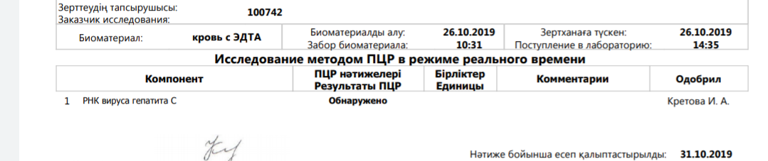 - Гепатит: Не обнаружен