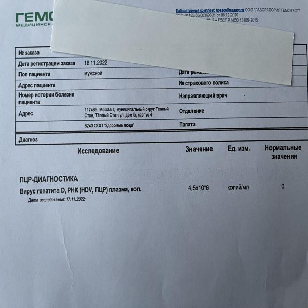 Про назначения в РУДН уже вам писала. Бициклол снижает АЛТ, это да, но он никак не борется с болезнью, с ее причиной, это лечение анализов. Обычно вирус гепД подавляет вирус гепВ, поэтому необходимость приема тенофовира под вопросом. Нужно знать нагрузку по гепВ (в Инвитро это анализ https://www.invitro.ru/analizes/for-doctors/557/27777/), если она будет нулевой или меньше 2000 МЕ/мл, то тенофовир не нужен. Лечить же нужно гепД, но это лечение тяжелое, с большими побочками, поэтому необходимо наблюдение опытных профильных врачей и консультация трансплантологов.