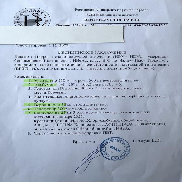 Всё, что вы описали и выложили, было полгода назад. Что сейчас? Анализы какие, есть ли асцит, что с гепД?
