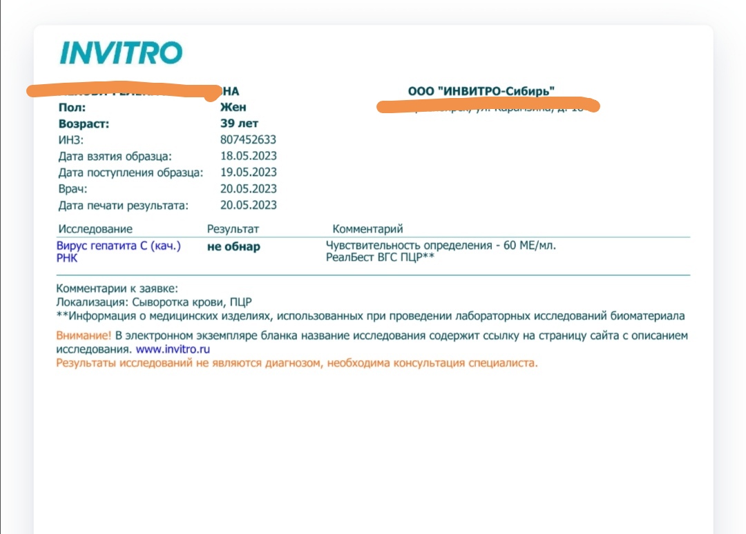 Ирина, пришёл результат с Инвитро. Получается 4 раза у них сдавала и отрицательный. Ничего не пойму, почему в поликлинике положительный выдали и кому верить.
