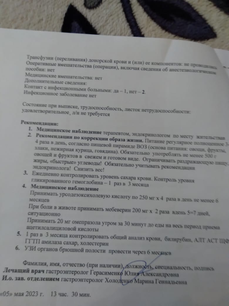 Доброго времени суток, форумчане, выкладываю выписку моей мамы с стационара. Устно говорили, что ставят цирроз, но видимо, все таки додумались, поняли, что оснований то нет для этого диагноза и мнение свое изменили. Что скажите? Что посоветуете? Диагноз, как я и предполагала, стеатогепатоз. Согласны ли с рекомендациями врача, может что посоветуете дополнительно? Как смотрите на то, чтобы к лечению добавить расторопшу и отвар или кисель овса? Кстати, в описании предоставленной лечения не написали самое основное, ей делали все это время капельницы и уколы гептрала, уж не знаю, почему врач не написал в выписке, может забыл