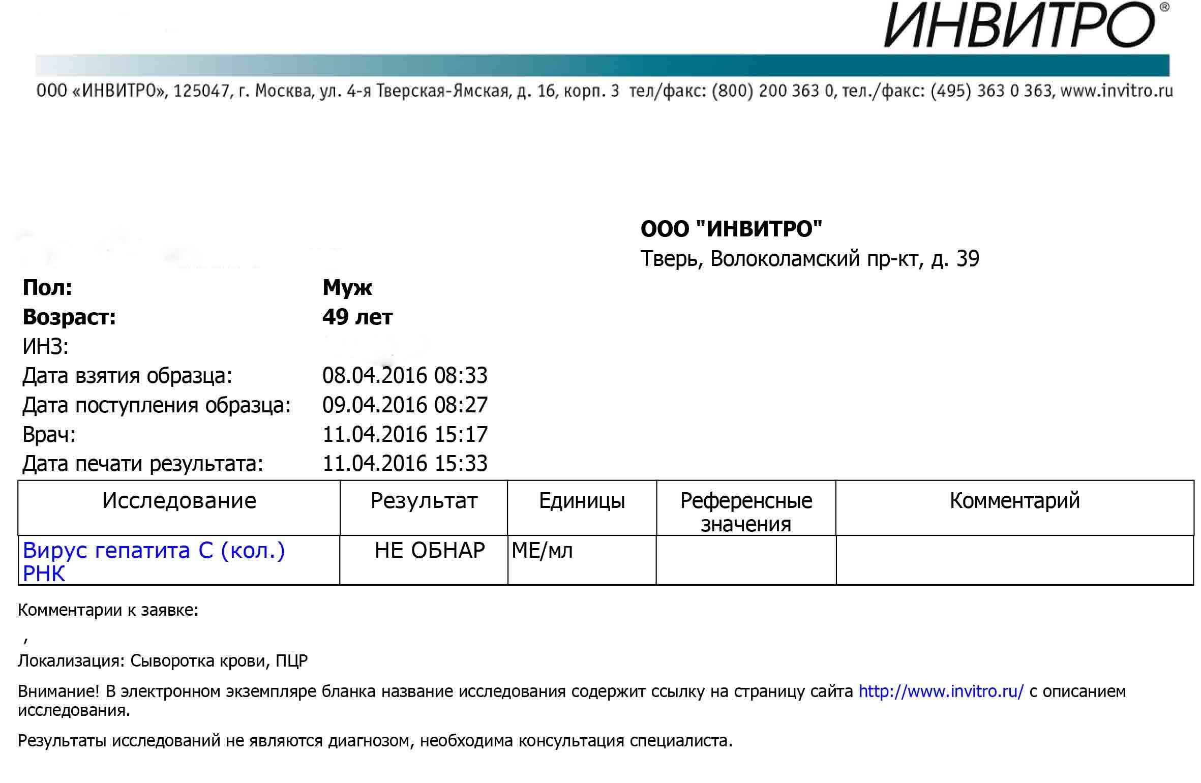 Сегодня 11.04.2016 .получил анализы на количество ,после первых 2 недель терапии.публикую.