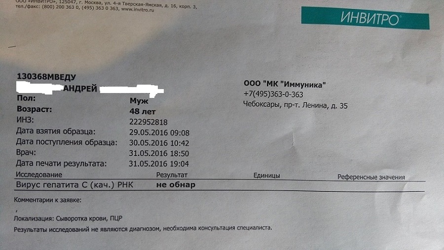 ). на 21 день (3 недели ) сдал качество в инвитро (чуйка 60) результат- НЕ ОБНАРУЖЕННО!