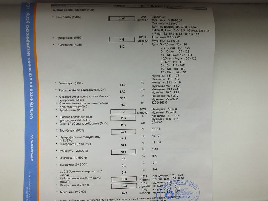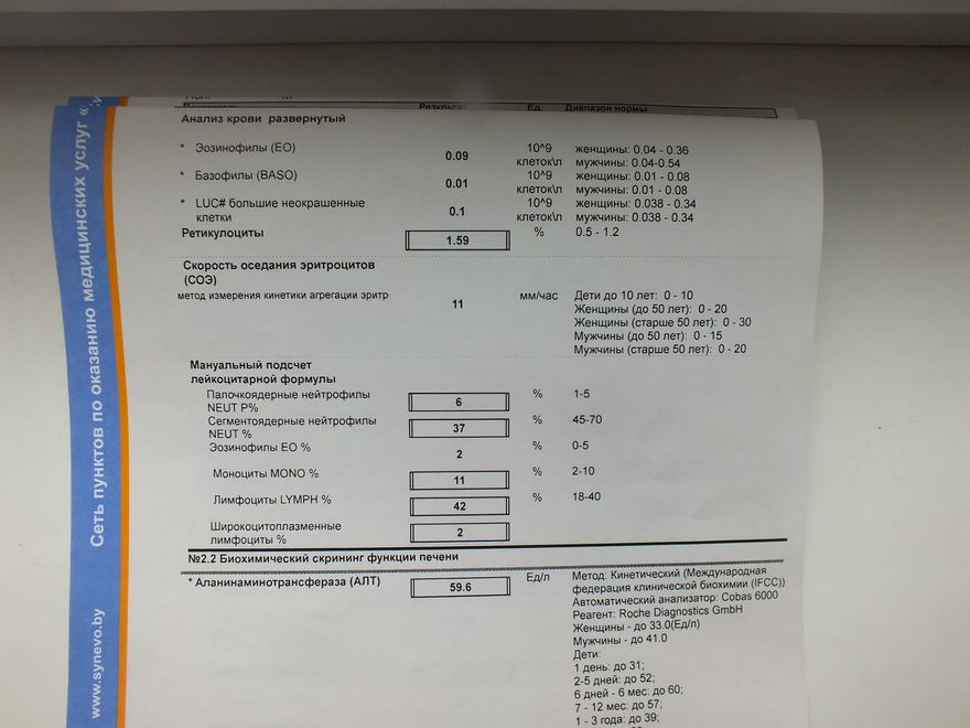Понизились лейкоциты, но это тоже от лекарств! У многих форумчан при таком фиброзе падают лейки. Еще здесь рибы виноваты! Они подкашивают имунку. Но пока и этот показатель терпимый. Но есть шанс заполучить какую-нибудь попутную инфекцию (насморк, больное горло и т.д.). Но, если что, тоже можно подключить какие-нибудь препараты...