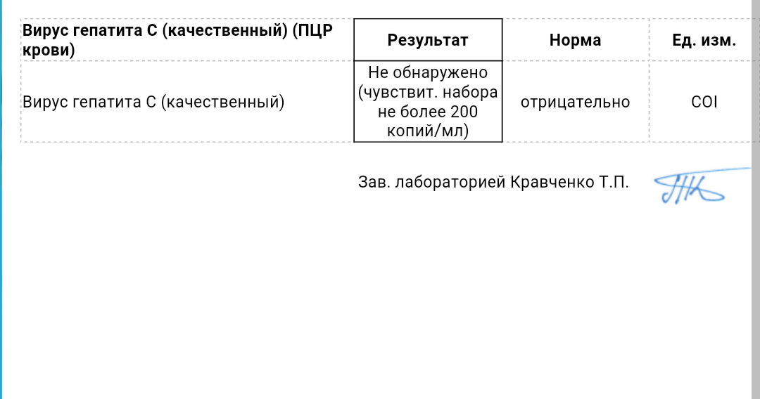 РСR HCV-минус стоит нет виря!!