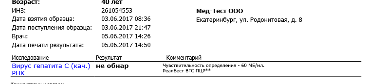 - Гепатит: Не обнаружен