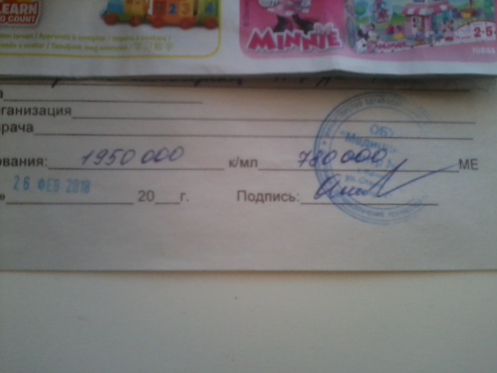 Вирусная нагрузка 1950000 к/мл 780000 МЕ