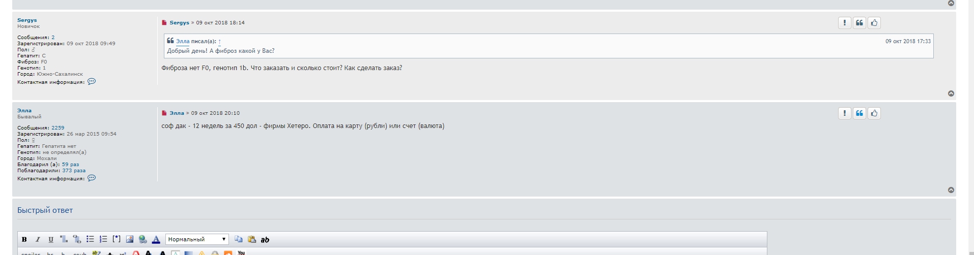 Старт 1.09.18 Ledifos+ Рибавирин Северная звезда 1200